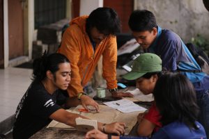 Ketika momen bakti sosial di dusun terpencil itu, tim membagikan tas dan alat-alat tulis pada
